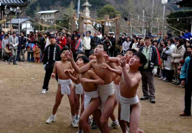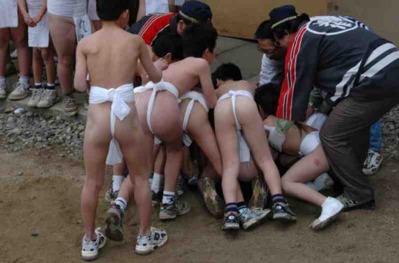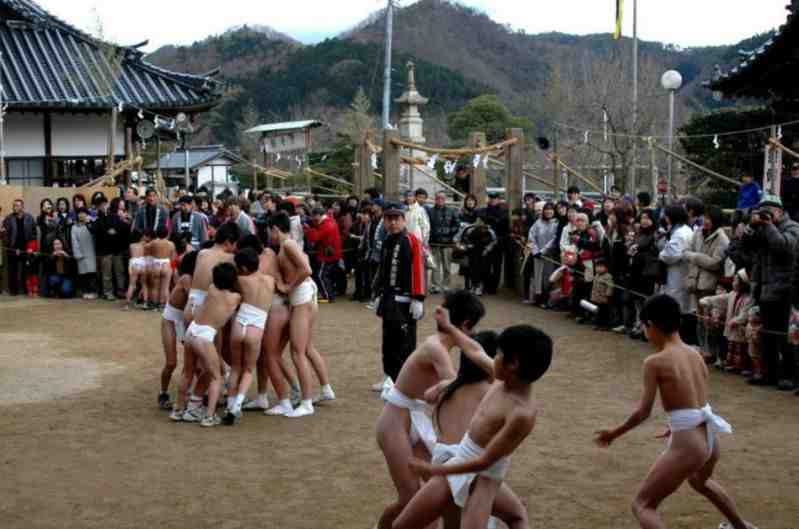 Japan - am 3. Samstag im Februar findet am Saidai-ji Tempel in Saidaiji-naka (Okayama) das traditionelle Eyo Hadaka-Fest statt, das Fest der Nackten. Der Begriff »nackt« ist dabei nicht ganz zutreffend, denn die Teilnehmer tragen einen weissen Lendenschurz. Ein Fest übrigens, an welchem nur Männer teilnehmen.