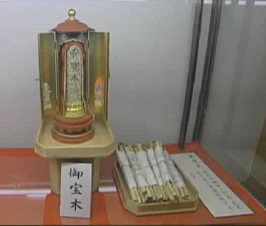 Von den „richtigen” Glücks- stäben gibt es nur 2 Stück. Hier im Schrein befindet sich einer der Glücksstäbe. |