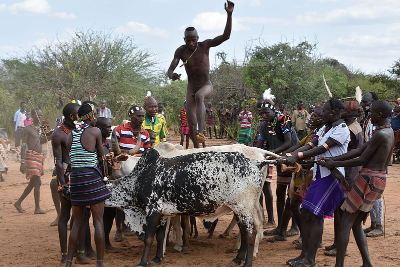 Die Hamar (oder auch Hamer, Amar, Amer) sind eine Bevölkerungsgruppe, die in der Omo-Region im Südwesten von Äthiopien leben. Um ein „richtiger” »Mann« und Stammeskrieger zu werden und damit heiraten und Kinder zeugen zu dürfen, muss ein Jüngling erst einmal ein Ritual bestehen. Ein Bestandteil dieses Rituales ist es, mit Anlauf auf ein Rind zu springen und über die Rücken weiterer, nebeneinander stehender Rinder hinweg zu laufen. Dieses muss er viermal machen.