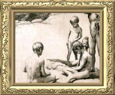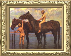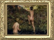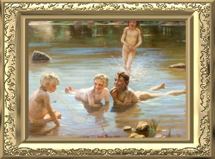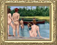 In der Malerei finden wir häufig Bilder, auf denen nackte Menschen in der Natur gezeigt werden - dabei ist das Bildnis eines nackten Menschen in der Natur nicht gleich auch immer ein Motiv aus der Freikörperkultur. Da es mit diesen Motiven mehr als reichlich Bilder gibt, habe ich hier nur solche ausgewählt, die man durchaus zur Freikörperkultur rechnen kann, wobei nicht unbe- dingt immer der Mensch im Vordergrund steht.