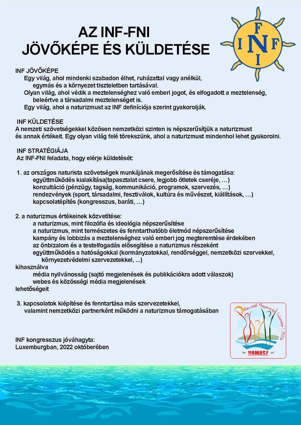 Auf dem 3. Naturisten-Weltkongress in Montalivet wurde am 23.08.1953 die »Internationale Naturisten-Föderation« (INF) gegründet. Auf drängen der Franzosen wurde der Abkürzung »INF« noch die Kürzel »FNI« (Fédération Naturisme Internationale) hinzugefügt. Die INF/FNI setzt sich inzwischen aus Mitgliedern aus mehr als dreißig Ländern zusammen und hat sich u.a. zum Ziel gesetzt, die Vorzüge des Naturismus in der Öffentlichkeit zu bewerben und somit den Naturismus zu stärken und zu verbessern.