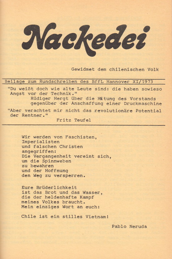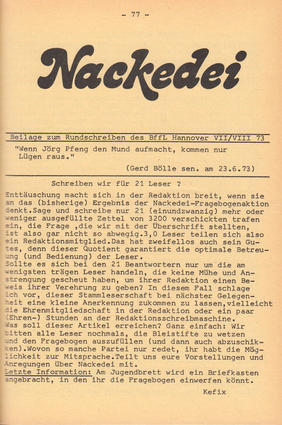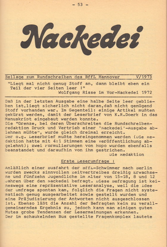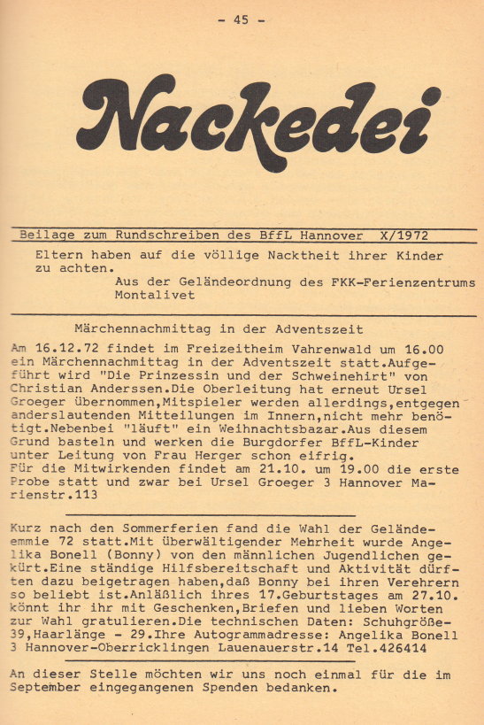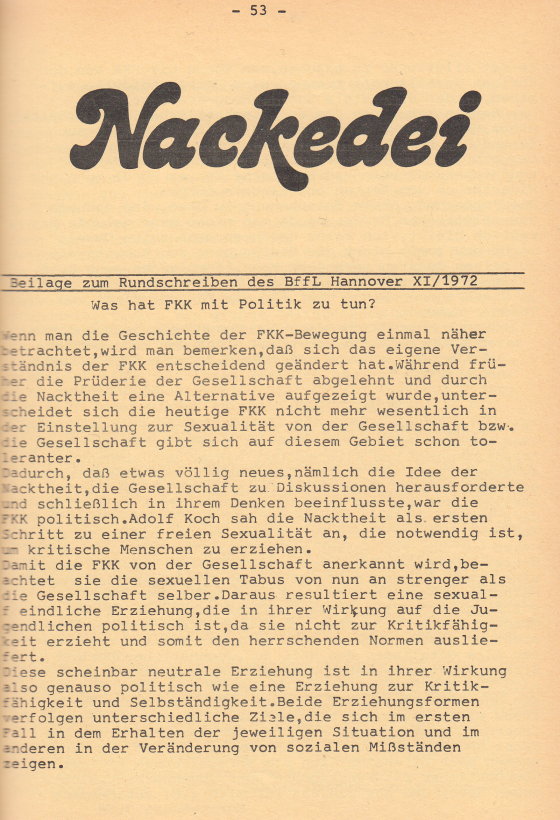 „Nackedei” ist das Mitteilungsblatt / Rundschreiben für die FKK-Jugend im BffL Hannover