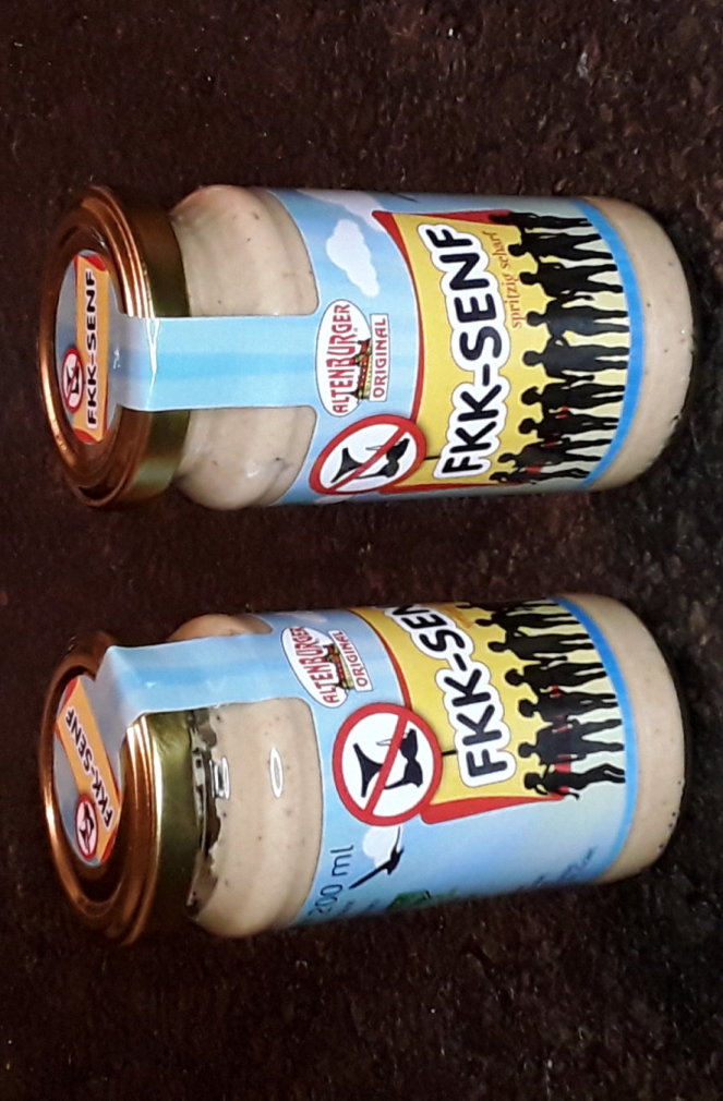 ![]() | „FKK-Senf” ... so scharf, der zieht einem doch glatt die Klamotten aus |