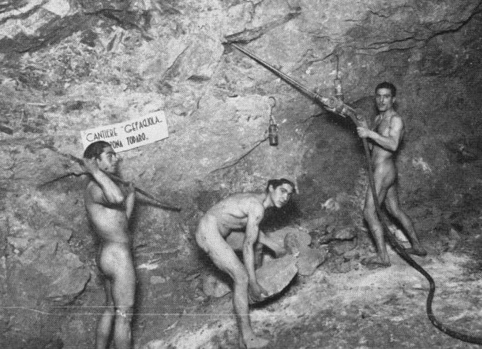 ![]() | Italien 1950er Jahre „Schwefel-Minen” - wo die Nacktheit eigentlich nur praktisch war. |