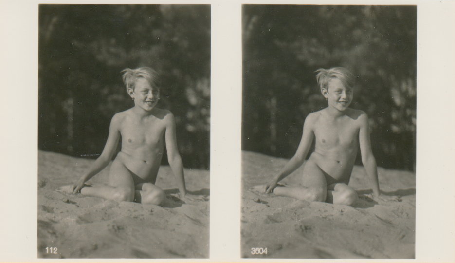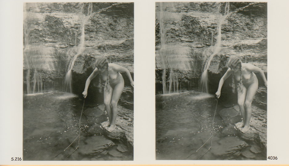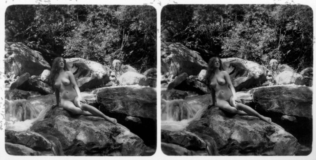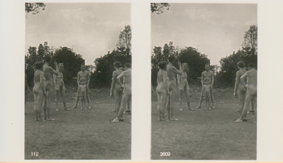 | Mittels zweier, fast identischer Bilder, lässt sich ein Motiv mit einem Stereoskop so wiedergeben, dass ein räumlicher Eindruck von Tiefe entsteht (siehe auch: Wikipedia → Stereoskopie). Eine fotografische Technik, welche auch schnell Einzug in die Fotografie der damaligen Nacktkultur fand. |
