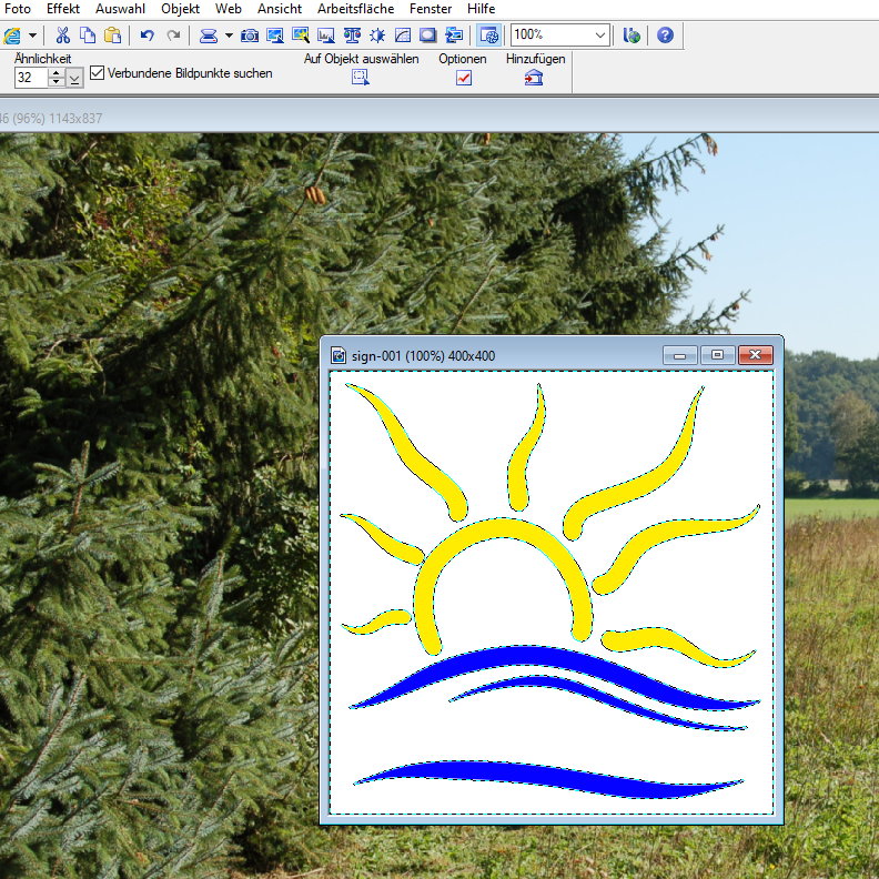 Dann öffnet Ihr im Bildbearbeitungsprogramm jenes Bild, in welchem Ihr das Symbol einbinden möchtet.