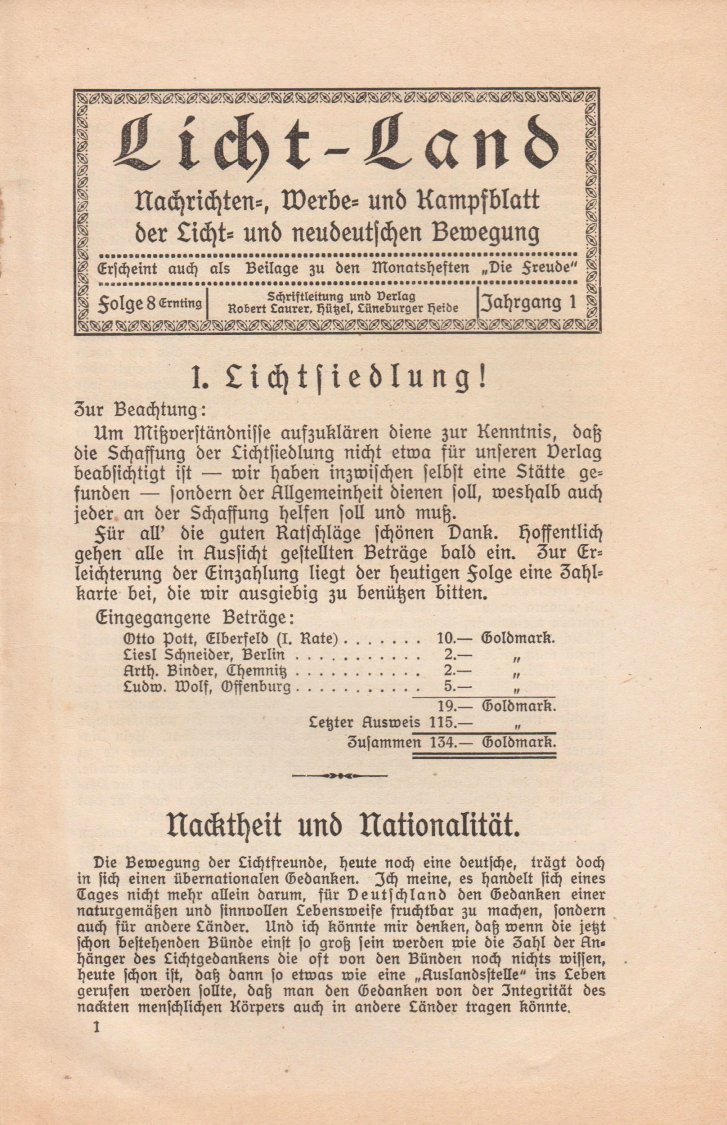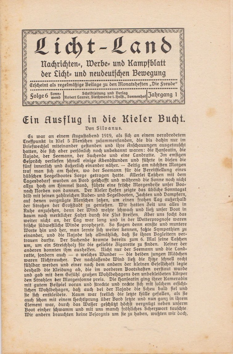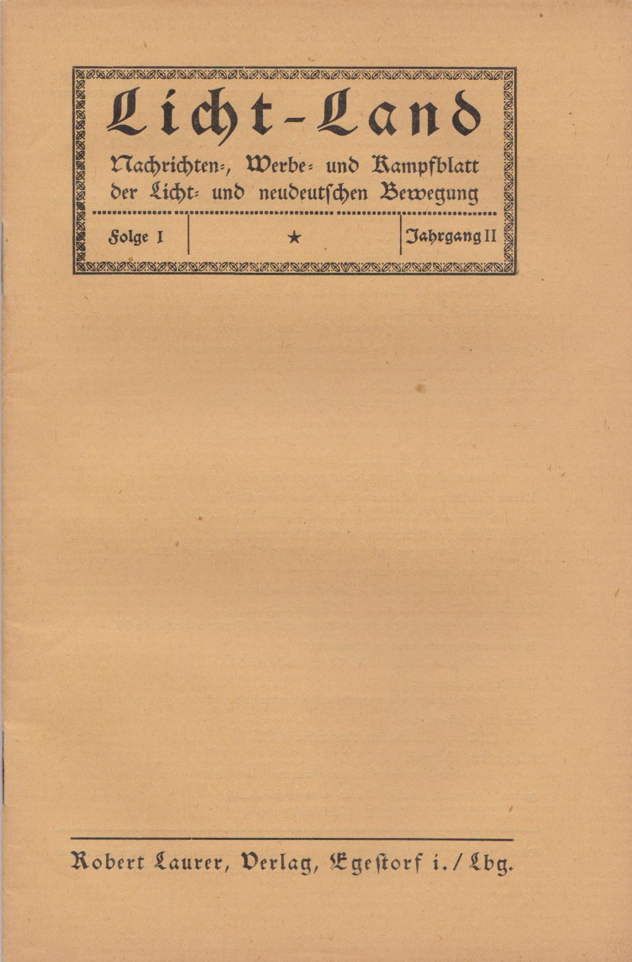 Die Zeitschrift „Licht-Land” erschien 10 Jahre lang, von 1924 bis 1933 und hatte ab den späten 1920er Jahren einen Umfang von 10 bis 16 Seiten, wobei es zunächst nur drei weitere Bildseiten, neben dem Titelbild, pro Ausgabe gab.