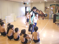 Besonders viel Freude bereitet es den „Nacktfröschchen”, wenn sie gemeinsam für die Tanzgruppe üben. Dann sind alle anderen Spiele schnell vergessen, wollen sie doch zeigen, welch „erwachsene Künstler” sie schon sind, sein können. Das Bild zeigt die „Nacktfröschchen” beim Tanz »die Quelle« in voller Hingabe.