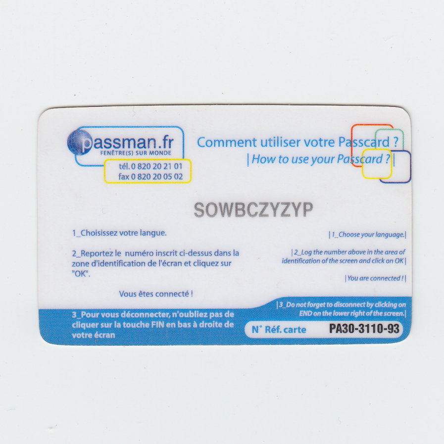 Internet-Zugangskarte Internet-Zugangskarte ...Frankreich... Centre Hélio-Marin - Rene Oltra30 Einheiten zurück