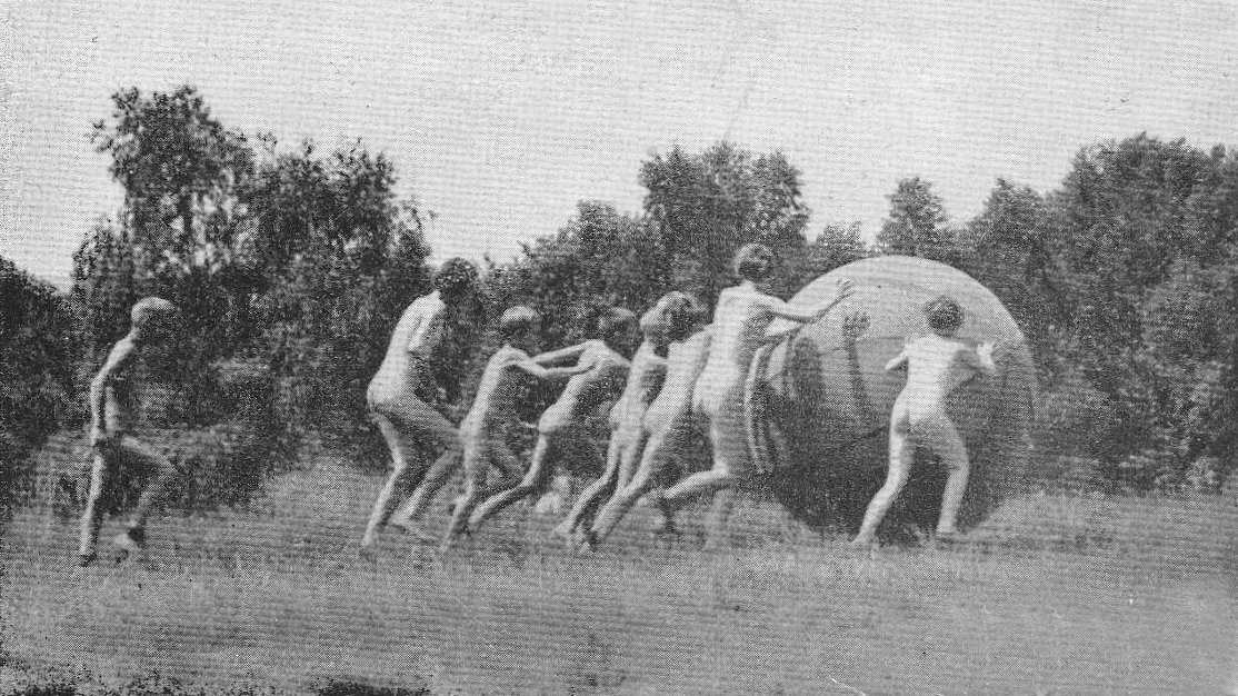 Dieser überdimensional große Ball mit einem Durchmasser von ungefähr 150 cm war früher sehr beliebt - und dies nicht nur bei den Naturisten.