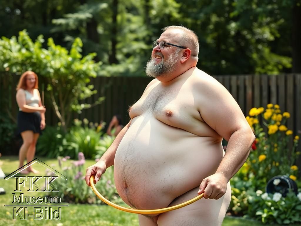 | Dank der Möglichkeit mit Hilfe der Künstlichen Intelligenz Bilder selbst zu generieren, sind wir nun in der Lage, auch diese Sport-Idee zu visualisieren und damit erfassbarer zu machen. Wir verfügen zwar über FKK-Fotos von realen Menschen mit Hula-Hoop-Reifen, haben aber keine Genehmigung zur Veröffentlichung. Auf Prompts zum generieren von Geschlechtsteilen haben wir verzichtet. |