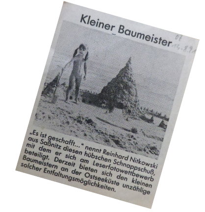 Mit dieser Aufnahme des kleinen Mädchens und der kunstvollen Sandburg nahm er 1980 an einer Kreisfotoschau teil und im August 1991 an einem Leserfotowettbewerb der Ostsee-Zeitung (veröffentlicht am 13.08.1991).