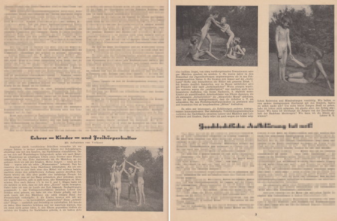 - Obgleich meine Kinder als ausschliesslich Arbeiterkinder von Eltern stammen, die als sozusagen „fortschrittlich” die „bürgerliche Moral” ablehnen, habe ich dennoch wahrgenommen, dass die Arbeiter z. T. am schwersten für den Freikörperkulturgedanken zu gewinnen sind und besonders fest an hergebrachten „Sitten” festhalten.