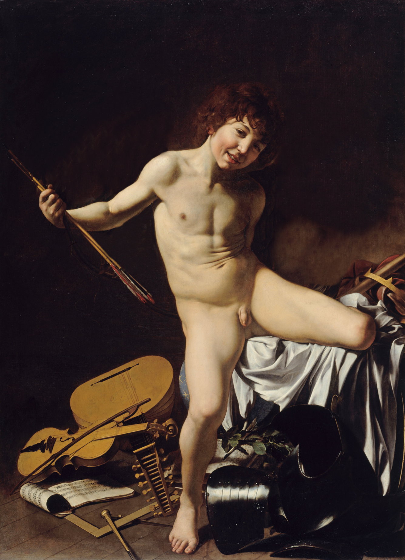 ... des Künstlers Caravaggio ging hier noch einen Schritt weiter, da er bei diesem Werk die Flügel des Amor recht dunkel gehalten hat, sie verschmelzen beinahe mit dem Hintergrund, werden dadurch fast belanglos und dienen mehr einer Alibi-Funktion zur eigentlichen Abbildung eines nackten Knaben. Nimmt man die Flügel ganz weg (wie ich es hier mit einem Bildbearbeitungsprogramm getan habe) wird diese Argumentation noch deutlicher, das Bildnis des nackten Jungen wirkt nun „unanständig”. Eine derartige Darstellung eines nackten Jungen, dazu noch als Fotografie in der heutigen Zeit ? - undenkbar !