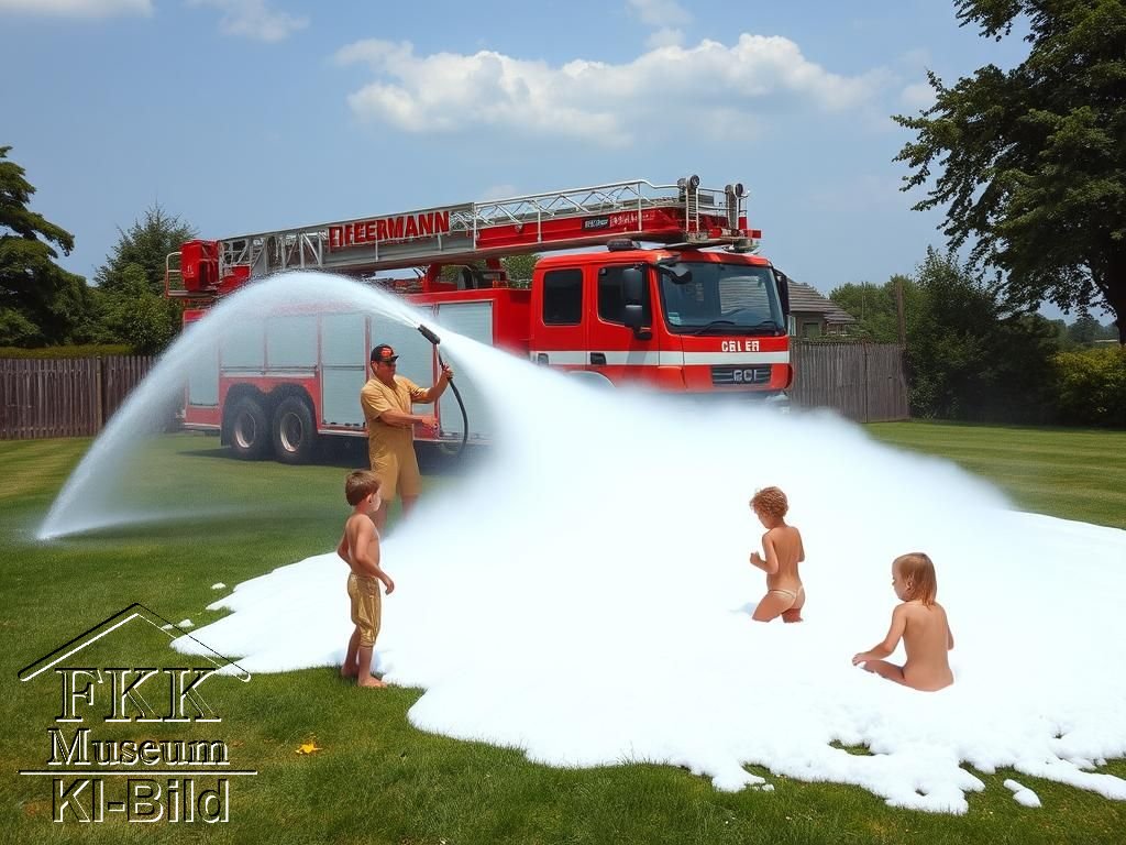 Feuerwehr und Schaum So eine „Schaum-Schlacht” ist auch nicht zu verachten, die Feuerwehr hilft. |