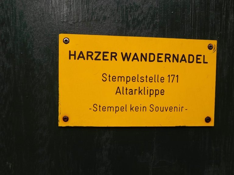 Ich bin erstmal schräg links abgebogen. Dort hat man allerdings immer wieder recht starkes Gefälle und recht starke Steigungen. Aber nach ungefähr 1 Km wird man dann mit einer unheimlich schönen Aussicht belohnt. Nachdem ich diese genossen habe, bin ich wieder umgedreht, um zur großen Kreuzung zurück zu kommen. Dort habe ich mich geradeaus gehalten Richtung Altarklippen. Auf dem Weg gibt es auch immer mal wieder schöne Aussichten. Nach ungefähr 2km kommt man wieder zu einer Kreuzung. Dort dann rechts ab. Man sieht zuerst das Forsthaus und direkt dahinter ist dann die Altarklippe mit Sitzmöglichkeit und der Stempelstelle mit der Nummer 171 der Harzer Wandernadel (vollkommen intakt). Von dort hat man auch eine sehr schöne Aussicht. Nach ungefähr 30 Minuten habe ich mich dann wieder auf den Rückweg gemacht. Der ist ein wenig anstrengender als der Hinweg, denn die Steigungen sind zwar nicht stark, aber ziehen sich sehr. Nach so ziemlich genau 3 Stunden kam ich wieder im Ort an.