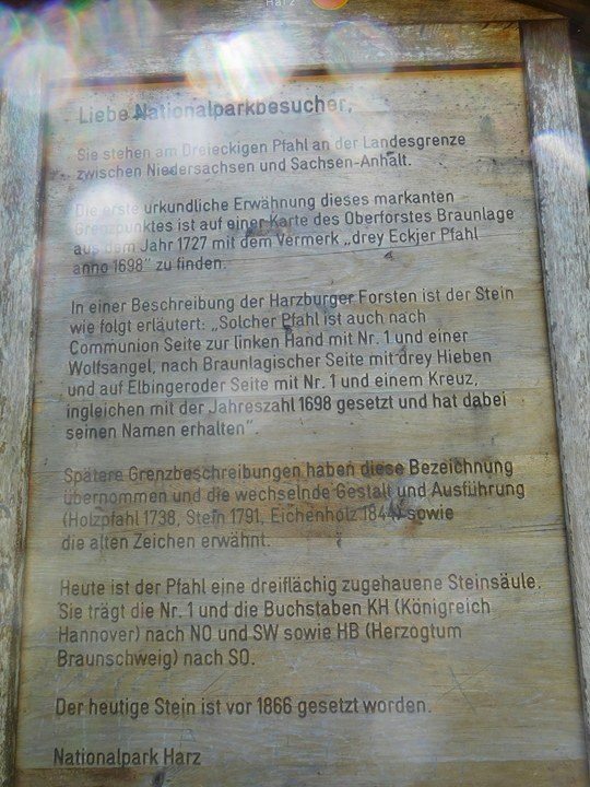 Beim „Dreieckigen Pfahl” legten wir eine kurze Pause ein und drückten uns den Stempel 168 der Harzer Wandernadel ins Heft.