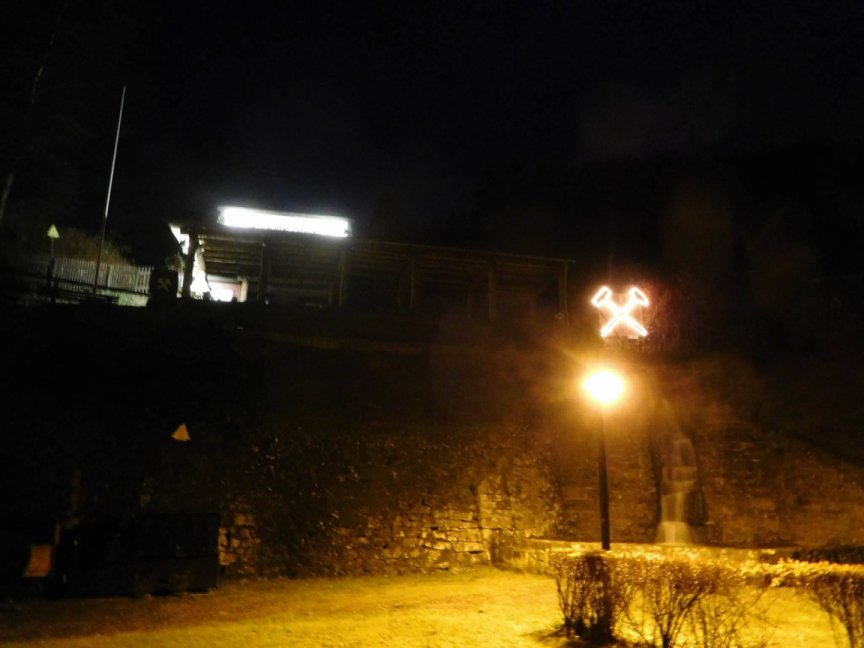 Anschließend habe ich mich auf den Rückweg gemacht. Bin den selben Weg zurück zum Ort gegangen den ich auch gekommen bin. Im Ort angekommen, bin ich aber nicht links abgebogen um zurück zum Parkplatz zu kommen, sondern bin erstmal geradeaus gegangen. Kurz vor der Durchgangsstraße habe ich mich dann aber links gehalten und bin unterhalb vom 19-Lachter-Stollen gegangen. Dort habe ich noch ein paar Fotos gemacht, bevor ich dann der Straße zurück zum Parkplatz gefolgt bin bis ich wieder am Auto war.