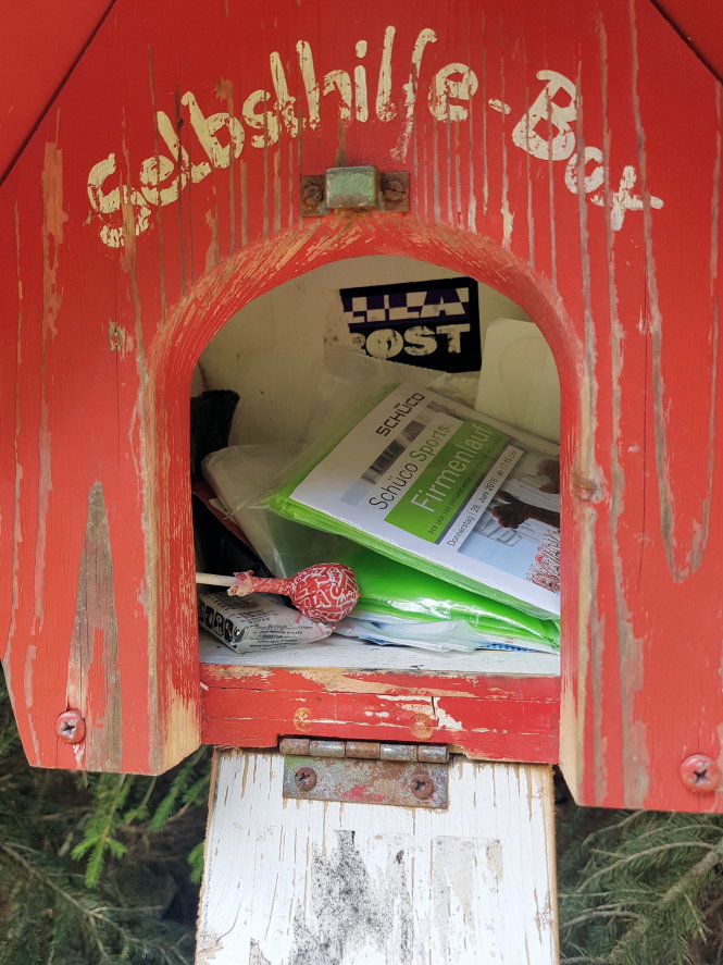 Nach kurzer Zeit auf dem Waldweg kam ich unten im Ort an und musste da ein ganzes Stück mitten durch bis ich endlich wieder auf einen Waldweg kam, der mich zur Stempelstelle „Helenenruh” (HWN 021) brachte.