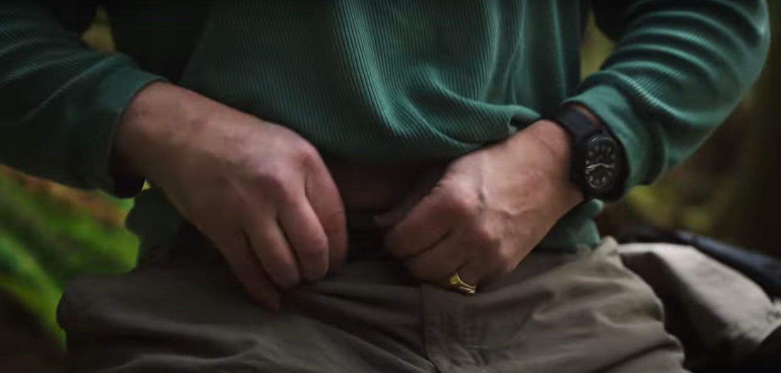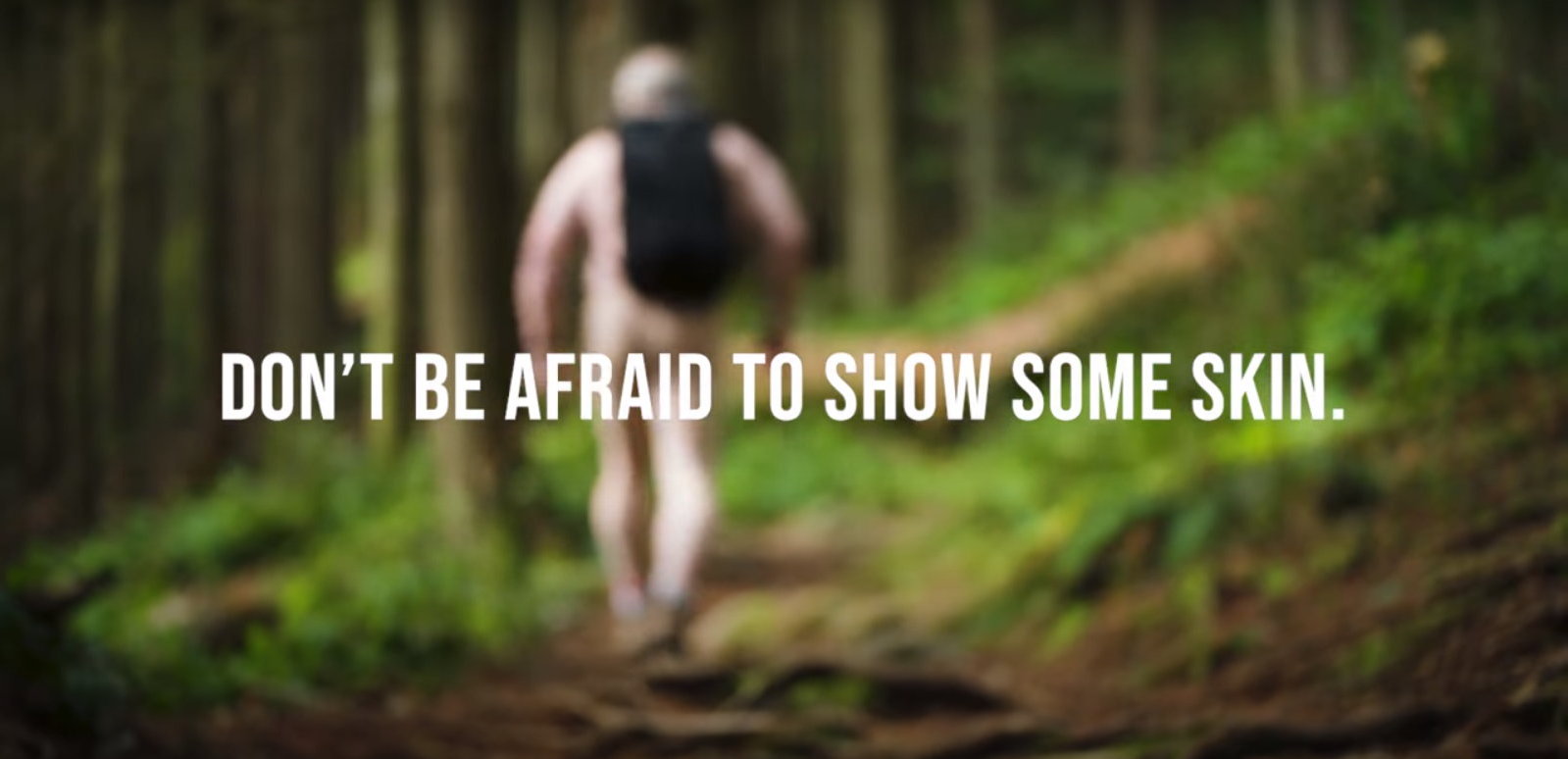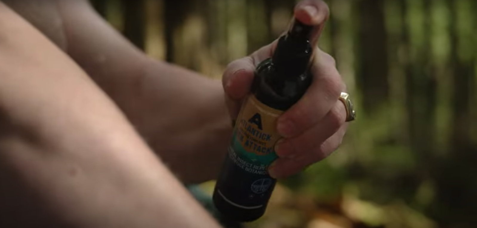 In diesem Werbespot sehen wir einen etwas älteren Herren, wie er in einem Wald wandert. Bei einer Rast zieht er sich komplett aus, verstaut seine Kleidung in dem Rucksack und sprüht sich mit dem Anti-Zecken-Mittel der kanadischen Firma AtlanTick sorgfältig ein. um dann, komplett nackt, weiter zu wandern.