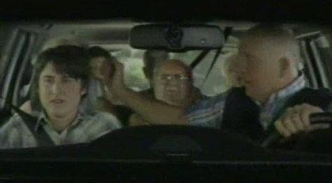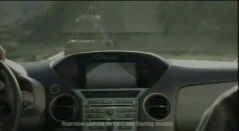 Nudisten sind mit ihrem Heißluftballon auf einer Landstraße gelandet und versperren den Weg. Der Fahrer des Hondas kommt nicht an dem Ballon vorbei und will - rückwärts - zurück fahren, doch wegen der vielen Mitfahrer hat er keine freie Sicht nach hinten ... aber zum Glück gibt es ja die neue Rückfahrkamera im Honda.
