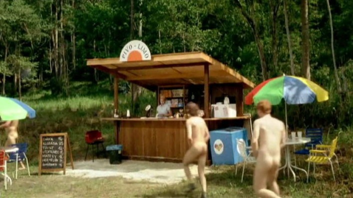 In dem 45 sekündigen Werbe-Spot der Firma Kofola sehen wir zwei junge Männer auf dem Weg zu einem Badesee. Dort angekommen, sehen sie eine junge Frau, der sie folgen - nicht ahnend, dass sie sich nun im Bade-Bereich der Nudisten befinden. Aus der Not machen sie eine Tugend und ziehen sich aus. Ihr nächster Weg führt sie direkt in eine Strand-Bar, wo sie sich erst einmal eine frische Kofola gönnen wollen. Die junge Frau, welche sie zu Anfang sahen erscheint nun auch an der Strand-Bar.