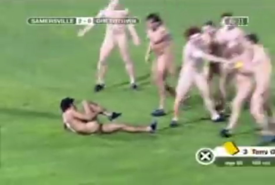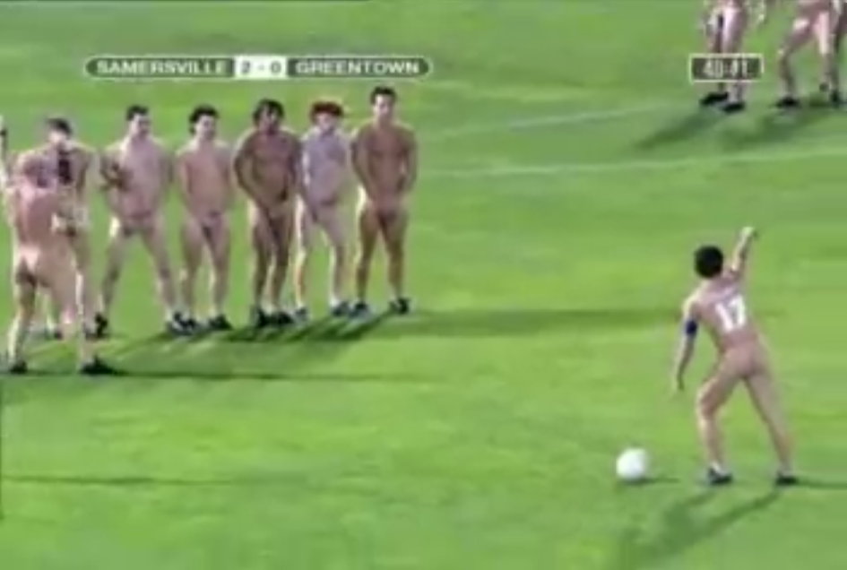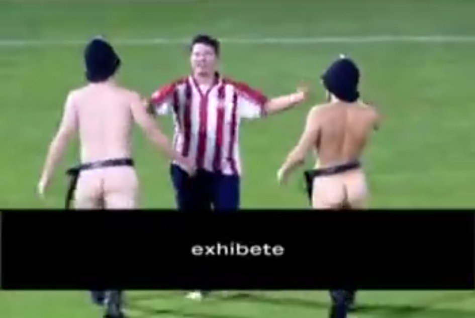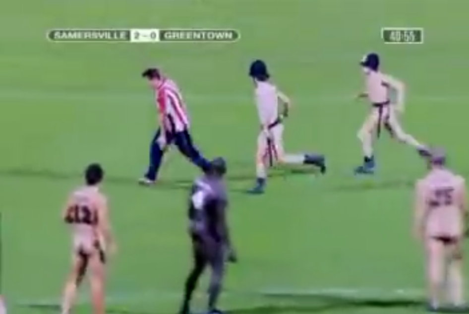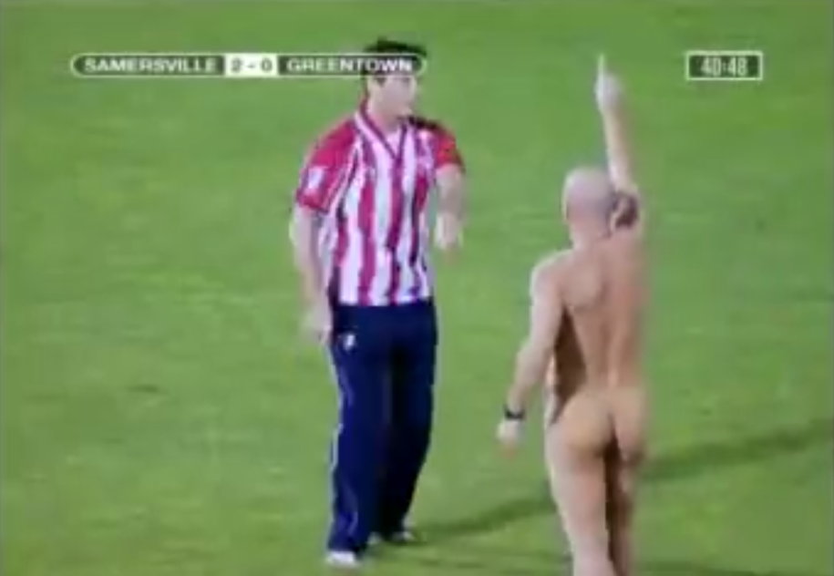 Kurz bevor der Strafstoss ausgeführt wird, gelingt es einem Zuschauer, einem „Flitzer”, auf das Spielfeld zu rennen und den Spielverlauf zu stören. Vom Schiedsrichter des Platzes verwiesen, läuft der „Flitzer” unbeeindruckt weiter auf dem Spielfeld hin und her, bis ihn zwei Polizisten einfangen und schließlich abführen können.
