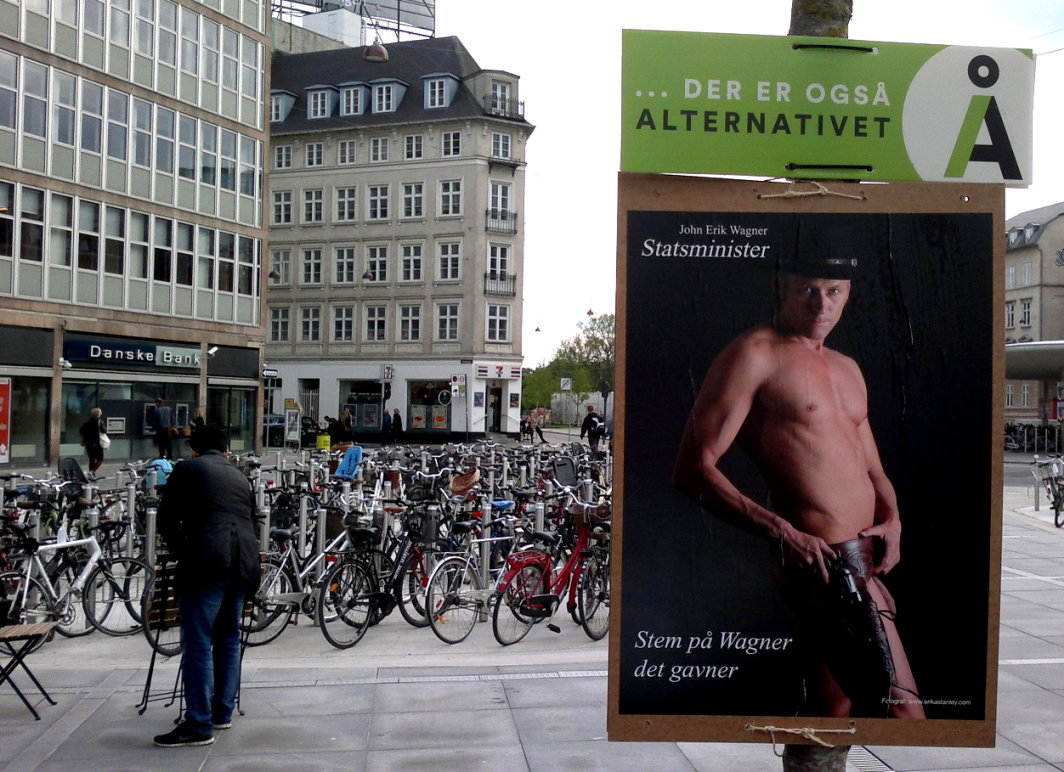 Zu den Wahlen am 18. Juni 2015 in Dänemark zog der parteilose John Erik Wagner im wahrsten Sinne des Wortes „blank”. Nur leicht als Cowboy verkleidet und unzensiert hingen die Plakate des 51-Jährigen in ganz Kopenhagen.