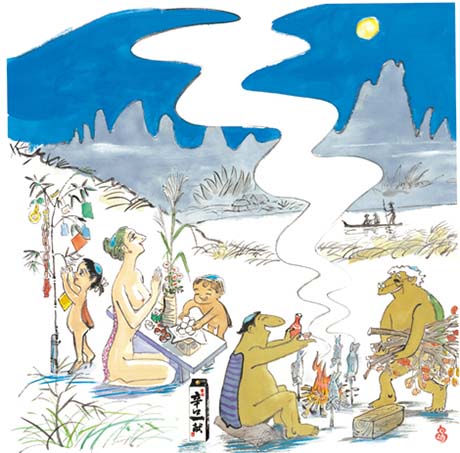 Die hier gezeigten Illustrationen stammen von dem japanischen Künstler Isao Kojima, der hier der natürlichen Nacktheit einen großen Raum gab.