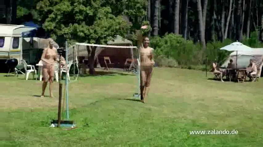 Schuhe sind akzeptiert, Bekleidung nicht - dieser Werbespot der Firma Zalando spielt auf einem FKK-Campingplatz. Ein Paketbote, etwas irritiert durch die vielen Nackten, liefert direkt ans Zelt und wird dann aufgefordert, sich auszuziehen.